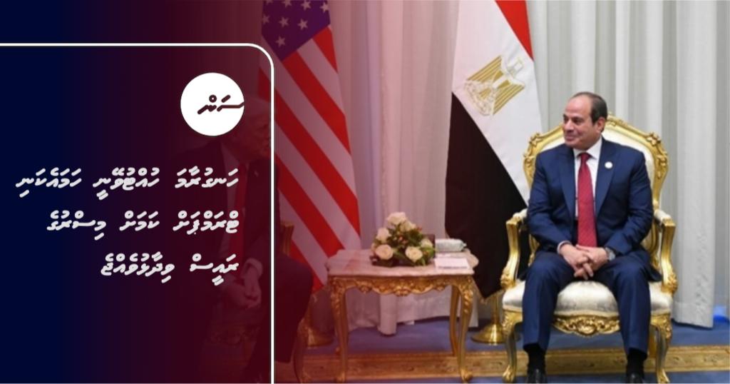 "އަޅުގަނޑު ރައީސް ޓްރަމްޕް ގާތު ދަންނަވަން ގަލްފުގައި އަޅުގަނޑުމެންގެ ސަރަހައްދުގައި ހިނގަމުންދާ ހަނގުރާމަ ތިޔަބޭފުޅުން ނޫން އެހެން ބަޔަކަށް ހުއްޓުވޭކަށް ނެތްކަން." ޤާހިރާގައި ބޭއްވި މިސްރު އެނާޖީ ޝޯ 2026 ގެ އެނާޖީ ކޮންފަރެންސްގައި ސީސީ ވިދާޅުވިއެވެ.