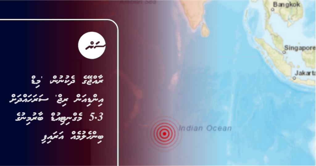 • އައްޑޫ ސިޓީގެ ދެކުނުން އިންޑިއާ ކަނޑަށް 5.3 މެގްނިޓިއުޑްގެ ބިންހެލުމެއް އަތުވެއްޖެ