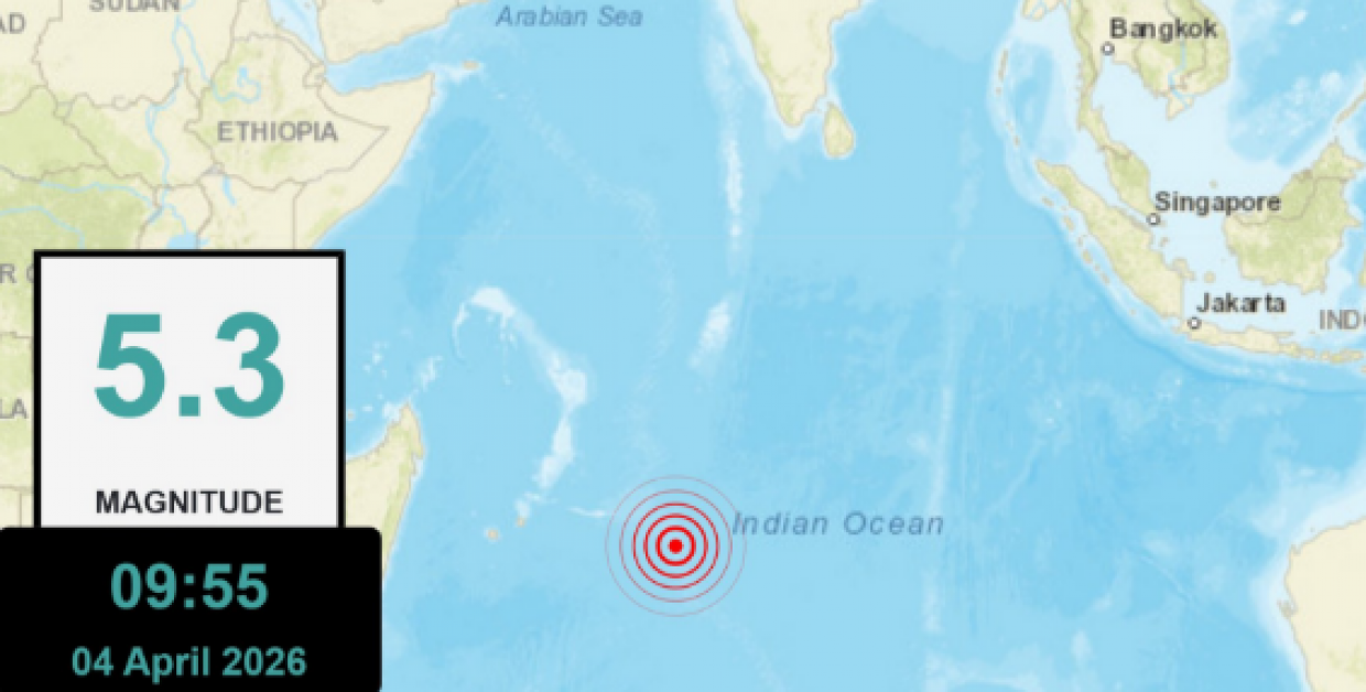 ދިވެހިރާއްޖޭގެ އެންމެ ދެކުނުން އައްޑޫ ސިޓީއާ 2553 ކިލޯމީޓަރު ދުރަށް، 5.3 މެގްނިޓިއުޑްގެ ބާރުމިނުގައި ބިންހެލުމެއް އަތުވެއްޖެއެވެ. މޫސުމާ ބެހޭ ގައުމީ އިދާރާއިން މައުލޫމާތު ދެއްވާ ގޮތުގައި މިއަދު ހެނދުނު 09:55 ހާއިރު މި ބިންހެލުން އައިސްފައިވަނީ މިޑް އިންޑިއަން ރިޖް ކިޔާ ސަރަހައްދަށެވެ. މިއީ އެފްރިކާގެ ޕްލޭޓާއި އިންޑޯ އޮސްޓްރޭލިއާގެ ޕްލޭޓް ވަކިވަމުންދާ ޖިއޮލޮޖިކަލް ގޮތުން ހަރަކާތްތެރި ސަރަހައްދެކެވެ. މި ހާދިސާގެ ސަބަބުން ރާއްޖެއަށް އެއްވެސް ނުރައްކާއެއް ކުރިމަތިނުވާނެކަމުގެ ޔަގީންކަން މެޓް އޮފީހުން ވަނީ ދީފައެވެ.