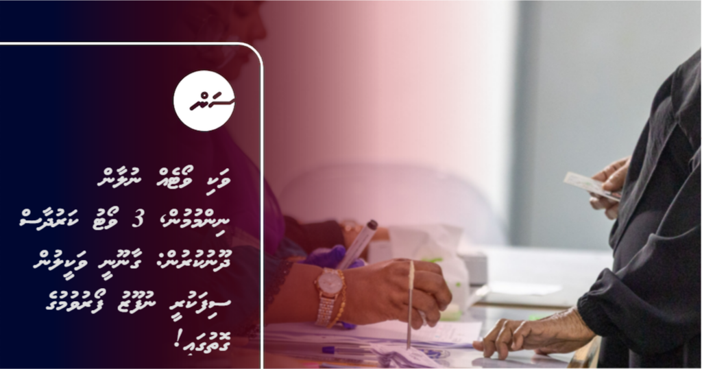 ރޭ ބޭއްވި ނޫސްވެރިންގެ ބައްދަލުވުމުގައި އިލެކްޝަންސް ކޮމިޝަންގެ ރައީސް މުޙައްމަދު ޒާހިދު ވިދާޅުވީ، ވޯޓުލާން ދާ ކޮންމެ މީހަކަށް ތިން ކަރުދާސްކޮޅު ދޭނެ ކަމަށެވެ. ނަމަވެސް ވޯޓުލާން ދާ މީހަކު، އެއް ވޯޓުގައި ބައިވެރިވާން ބޭނުން ނޫން ކަމަށް ބުނެފި ނަމަ، އެ ވޯޓެއްގެ ކަރުދާސް ނުދޭނެ ކަމަށް އޭނާ ވިދާޅުވިއެވެ.