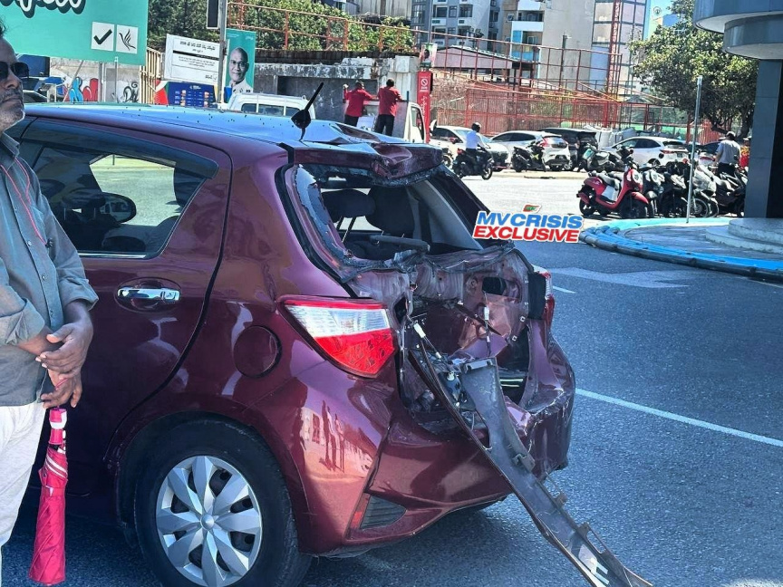 މާލެ، ބޮޑުތަކުރުފާނު މަގާއި ހިތިގަސް މަގު ގުޅޭ ސަރަހައްދުގައި، ކާރަކާއި ސައިކަލެއް ޖެހި ހިނގި އެކްސިޑެންޓު -- ފޮޓޯ/ އެމްވީ ކްރައިސިސް