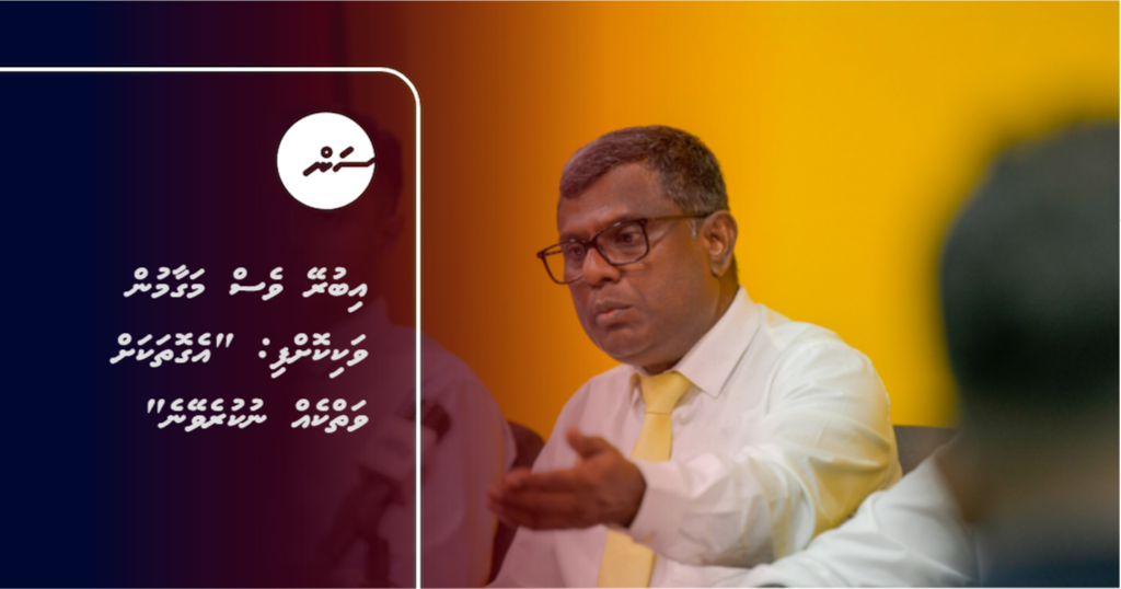 އޭނާ ވިދާޅުވި ގޮތުގައި އޭނާ ވަކިކުރީ، ރޭ ބޭއްވި އެމްޑީޕީގެ އުފާފާޅުކުރުމުގެ ޖަލްސާގައި ކުރީގެ ރައީސް މުހައްމަދު ނަޝީދަށް ވާހަކަދެއްކެވުމުގެ ފުރުސަތު ނުދިން މައްސަލައިގައި އެމްޑީޕީގެ އެތެރެ ހޫނުވެފައިވާ ދަނޑިވަޅެއްގައެވެ.
