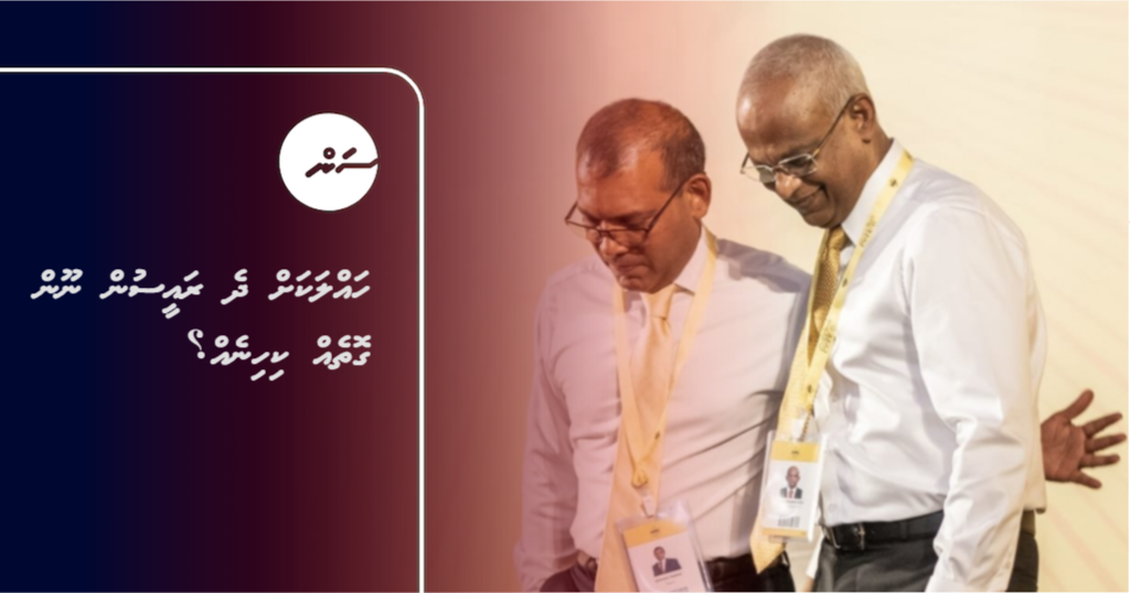 ހަމަ ގައިމު ވެސް އަދިއެއް, ދެ ރައީސުން ކުރެ ރައީސަކު ފަހަތަށް ޖެހިވަޑައިގަންނަވަން އުޅުއްވާ މަންޒަރެއް ނުފެނެއެވެ. މިހެންވާ ސަބަބުތައް ކިޔައިދެއްވަމުން މިދިޔަ ދައުރުގައި މަޖިލިސް މެންބަރުކަން ކުރެއްވި، އެމްޑީޕީގެ އިސް ބޭފުޅަކު ވިދާޅުވިގޮތުގައި ދެ ރައީސުންގެ ކައިރީގައި އުޅުއްވާ، އަމިއްލަ ވިޔަފާރިއާއި އަމިއްލަ އެހެން ބޭނުންތަކަށް އުޅުއްވާ ބޭފުޅުން އެ ބޭފުޅުންނަށް 2028 ގެ ރިޔާސީ އިންތިޚާބު ކާމިޔާބުވާ މަންޒަރު އަބަދުމެ ދައްކަވައެވެ. ފަހަތަށް ޖެހިވަޑައިނުގެން އެ އުޅުއްވަނީ އެ ސަބަބުތަކާ ހުރެ ކަމަށް އޭނާ ވިދާޅުވިއެވެ.