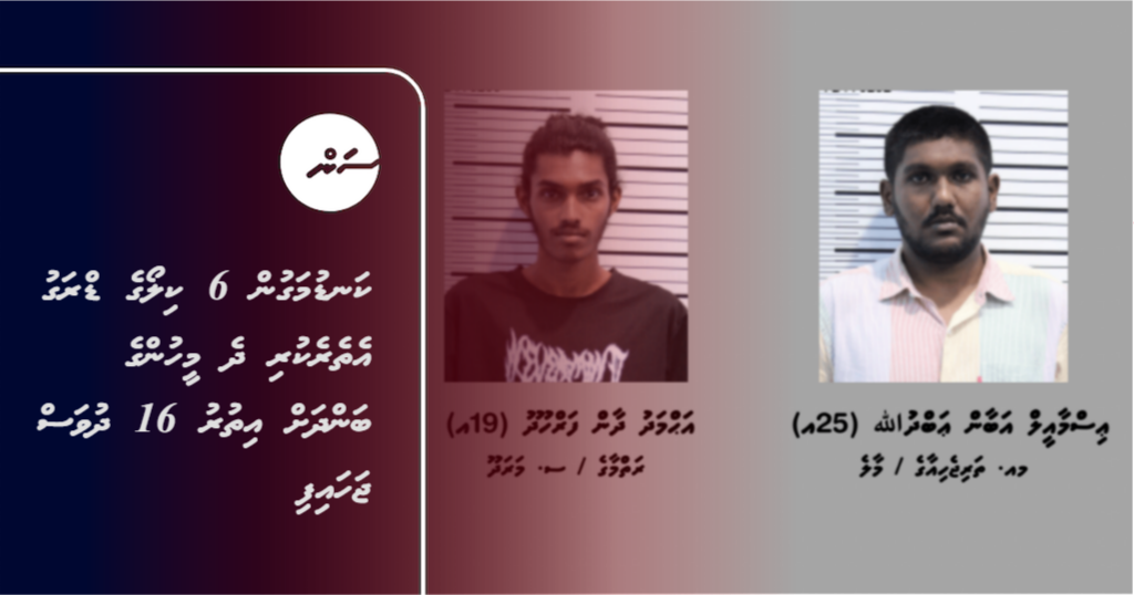މިދިޔަ މަހު ފަހުކޮޅުން ފެށިގެން އެ ދެ މީހުން ތިބީ، ހައްޔަރުކޮށްފައެވެ. އެ ދެ މީހުންގެ ބަންދަށް ބުރާސްފަތި ދުވަހު ވަނީ އިތުރު 16 ދުވަސް ޖަހައިފައެވެ.