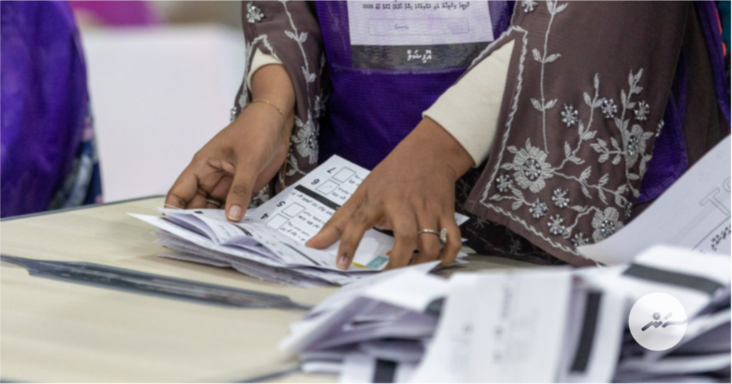 އޭޕްރީލް 4 ވަނަ ދުވަހު ބޭއްވި ލޯކަލް ކައުންސިލް އިންތިޚާބުގެ ވޯޓު ގުނުން: އިންތިޚާބުގެ ދެވަނަ ބުރުގެ ރީ-ރަޖިސްޓްރޭޝަނަށް މާދަމާ ހުޅުވާލަނީ -- ސަން ފޮޓޯ/ މުހައްމަދު ޝާތިއު އަބްދުﷲ