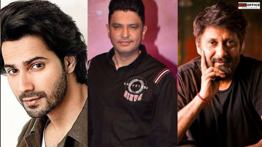 ފިލްމު ޑައިރެކްޓަރު ވިވެކް އަގްނިހޯތުރީ، ޕްރޮޑިއުސަރު ބުޝަން ކުމާރު އަދި އެކްޓަރު ވަރުން ދަވަން--ފޮޓޯ/މިޑްޑޭ