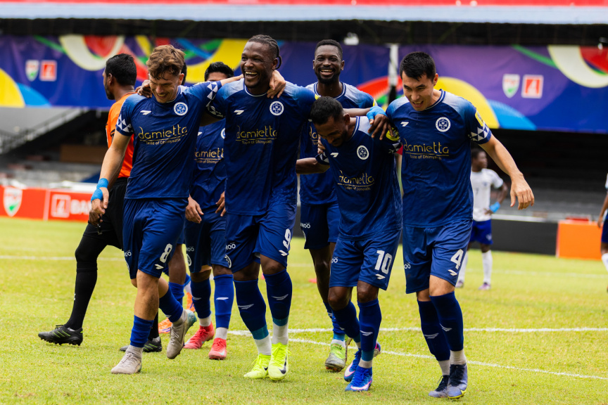 އެފްއޭ ކަޕުގެ ސެމީ ފައިނަލުގައި ބްލޫ އާއި ނިއު ކުޅުނު މެޗުގެ ތެރެއިން-- ސަން ފޮޓޯ: ޝާތިއު ޢަބްދުﷲ