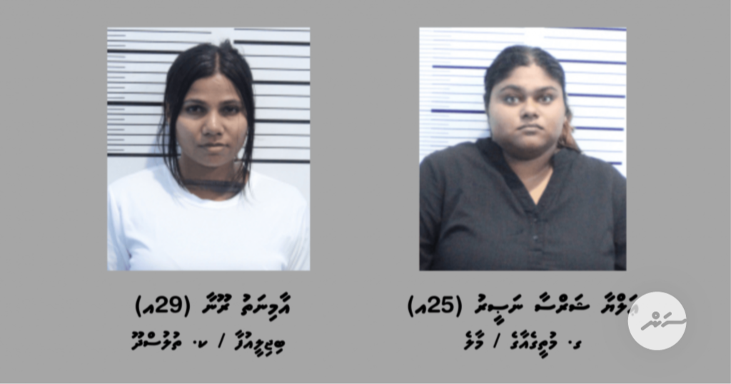 ފުލުހުން ހާމަކުރި ގޮތުގައި މި މައްސަލައިގައި ހައްޔަރުކޮށްފައިވަނީ މާލެ، ގ. މުތީގެއާގެ، ޢަލްޔާ ޝަރްސާ ނަޞީރު (25އ) އާއި ކ. ތުލުސްދޫ، ބިޖިލީއުފާ، އާމިނަތު ރޫނާ (29އ) އެވެ.