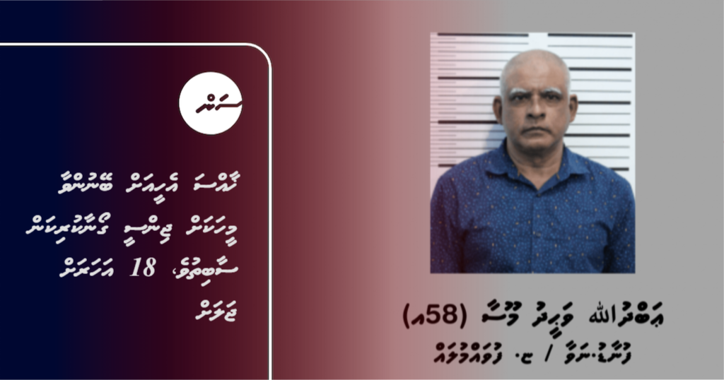 ޚާއްސަ އެހީއަށް ބޭނުންވާ ފިރިހެނަކާ އެކު ޖިންސީ އަމަލު ހިންގާފައިވާ މައްސަލައެއްގައި ދައުވާ އުފުލި މީހެއްގެ މައްޗަށް ކުށް ސާބިތުވެ، 18 އަހަރަށް ޖަލަށްލާން ކޯޓުން ހުކުމްކޮށްފިއެވެ.