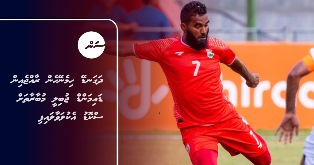 ގައުމީ ޓީމުން ޓިމޯ ލެސްޓޭއާ ދެކޮޅަށް އަމިއްލަ ދަނޑުގައި ކުޅުނު މެޗުގައި އަލީ ފާސިރު (ސެންޓޭ)-- ފޮޓޯ: އެފްއޭއެމް