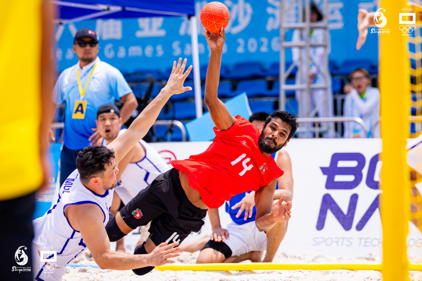 ހަވަނަ އޭޝިއަން ބީޗް ގޭމްސްގައި މިއަދު ރާއްޖޭގެ ފިރިހެން ހޭންޑްބޯޅަ ޓީމުން މޮންގޯލިއާ އާ ދެކޮޅަށް ކުޅުނު މެޗުގެ ތެރެއިން-- ފޮޓޯ: އެމްއޯސީ