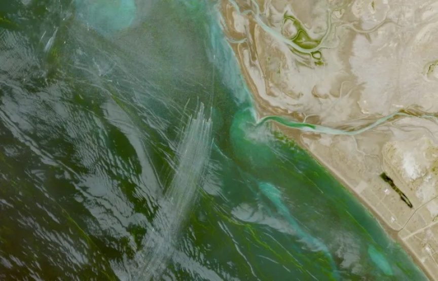 އީރާނުގެ ކަރްގަން އައްސޭރިފަށާ ކައިރީގައި އޮންނަ ހޮރްމުޒް ކަނޑުއޮޅީގެ އުތުރުގައި ކުދި އުޅަނދުތަކެއް ހަރަކާތްތެރިވާތަން ފެންނަ ސެޓެލައިޓް ފޮޓޯއެއް. ފޮޓޯ/ރޮއިޓާސް