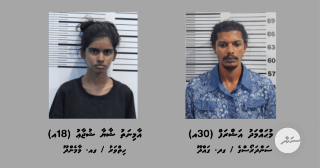 މި މައްސަލައާ ގުޅިގެން ހައްޔަރުކޮށްފައިވަނީ ގދ. ގައްދޫ، ސަންދަރޯސްގެ، މުޙައްމަދު އަޝްރަފް (30އ) އާއި ގއ. މާމެންދޫ، ހިތްވަރު، އާމިނަތު ޝާޔާ ޝުޖާޢު (18އ) އެވެ.