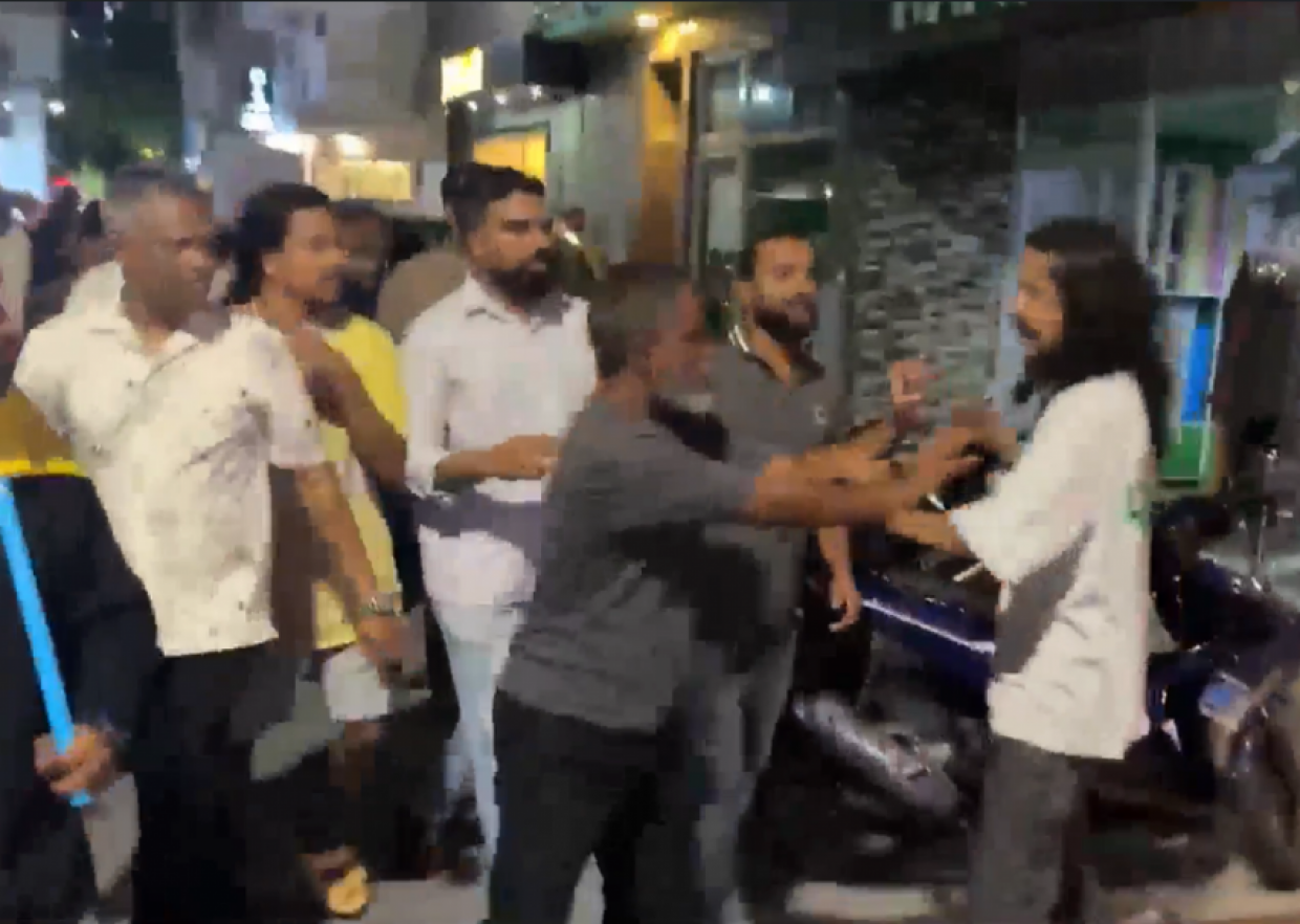 އާޒިމަށް ހަމަލާދޭ ވީޑިއޯ އާއްމު ވެފައިވާއިރު، ހެންވޭރު ސަހަރާ ކައިރިން މުޒާހަރާގެ ބައިވެރިން ހިނގާފައި ދަނިކޮށް، ކުރިމައްޗަށް އެރި ޒުވާނަކު ކުއްލި ގޮތަކަށް އާޒިމް މޭގައި ޖަހައި ކޮއްޕާލާ މަންޒަރު އެ ވީޑިއޯއިން ފެނެއެވެ.