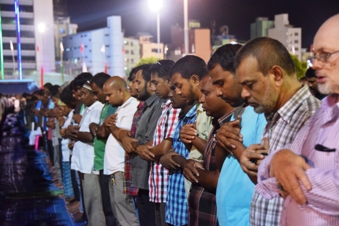 ޖަމާއަތުގައި ކުރި ނަމާދުގައި ރައީސުލްޖުމްހޫރިއްޔާ އަބްދުﷲ ޔާމިން އަބްދުލް ގައްޔޫމާއި ބައެއް ވަޒީރުން ބައިވެރިވެވަޑައިގެންނެވި އެވެ. އަދި ސަރުކާރު ކޯލިޝަންގައި ހިމެނޭ މަޖިލިސް މެމްބަރުންނާއި އާންމުން އެ ނަމާދުގައި ބައިވެރިވި އެވެ.
