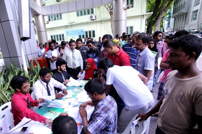 ކަރަންޓު ސަބްސިޑީ ފޯމު ބަޔަކު މީހުން ހުށަހަޅަނީ: ސަން ފޮޓޯ/ ފަޔާޒު މޫސާ