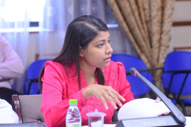 އައްޑޫ މީދޫ ދާއިރާގެ މެމްބަރު ރޮޒައިނާ އާދަމް ކޮމެޓީއެއްގައި ވާހަކަފުޅު ދައްކަވަނީ-- ސަން ފޮޓޯ/ އަލީ ނަސީރު