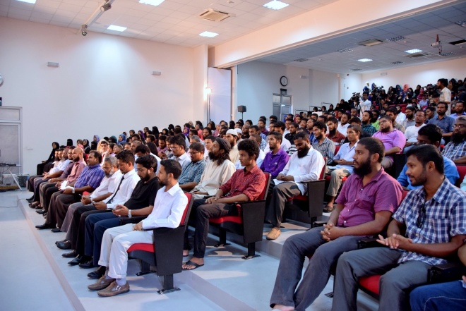 "އަ މޮޑެލް ފޯ ޔޫތު"ގެ ނަމުގައި ދިވެހި ޒުވާނުންނަށް ހާއްސަކޮށްގެން މިއަދު ހަވީރު ޔުނިވަރސިޓީގެ އޮޑިޓޯރިއަމްގައި ބޭއްވި ދަރުސްގެތެރެއިން -- ސަންފޮޓޯ / ޔޫސުފް ސޮފްވާން