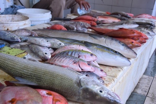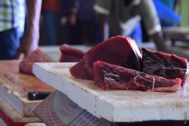 މަސް މާރުކޭޓުގައި މަސް ވިއްކަން ބަހައްޓާފައި ---- ސަން ފޮޓޯ/ އަހުމަދު ޝަރުވާން