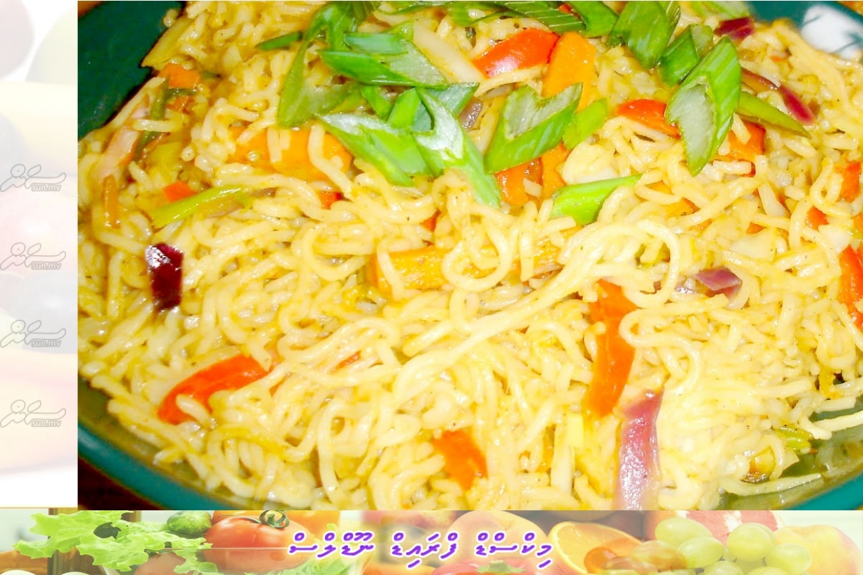 ތަވާ އުނދުންމައްޗަށް އުދާލާފައި ކުޑަ ތެޔޮފޮދެއް އަޅާލުމަށްފަހު ތެޔޮފޮދު ހޫނުވީމާ ފިޔާ، މިރުސް، ކެބެޖު، ކެރެޓް، އެއްކޮށް އަޅާފައި މޯޅިވީމާ މަސްކޮޅު އަޅާރޯފިލުމުން ނޫޑްލްސް ފިޔަވައި ބާކީ ތަކެތި އަޅާފައި ރަހަ ނިކުންނަ ވަރުވީމާ ނޫޑްލްސް އަޅާ އެއްކޮށްލުމަށްފަހު އުނދުން މަތިން ބާލާށެވެ.