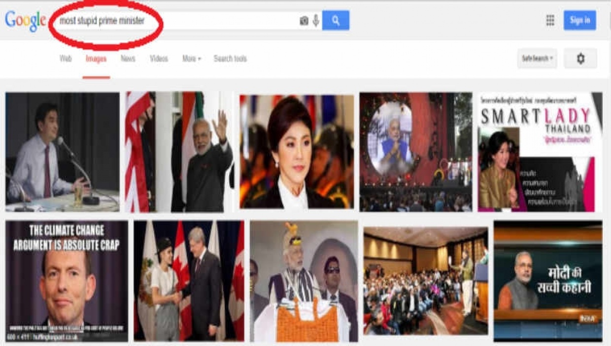 ގޫގޫލް ސާޗުގައި " ވޯލްޑްސް މޮސްޓް ސުޓުޕިޑް ޕްރައިމް މިނިސްޓަރ" މިހެން ޖެހުމުން ޕްރައިމް މިނިސްޓަރުންގެ ފޮޓޯތަކުގެ ތެރެއިން އެންމެ ގިނައިން އަންނަނީ މޯދީގެ ފޮޓޯ އެވެ.