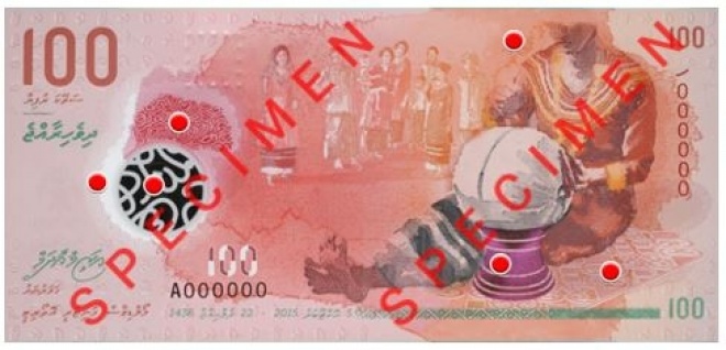 ރަން ދިހަފަހެއްގެ ނޫޓު ސީރީޒްގައި ހިމެނޭ 100 ރުފިޔާގެ ނަމޫނާ -- ފޮޓޯ: އެމްއެމްއޭ
