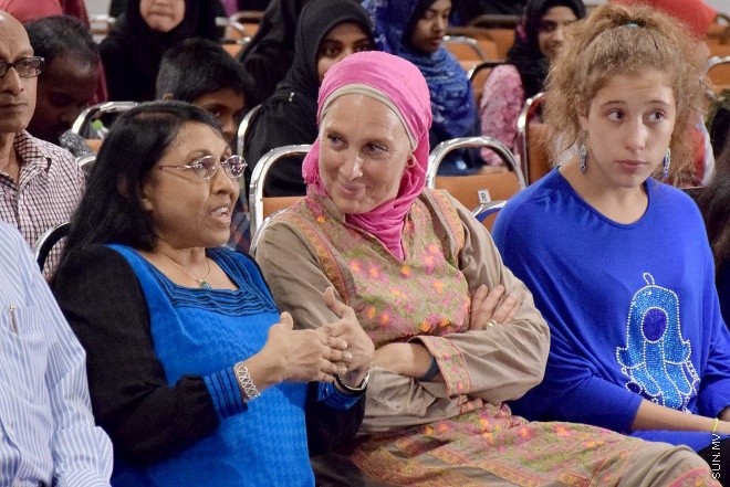ޕްރޮފެސަރް ޡާރިޤު ރަމަޟާންގެ އަނބިކަނބަލުންނާއި ކުރީގެ ރައީސް މައުމޫނު ޢަބުދުލް ޤައްޔޫމުގެ އަނބި ކަނބަލުން ތަޤުރީރު އަޑު އައްސަވަނީ- ސަންފޮޓޯ/ އަލީ ނަސީރު