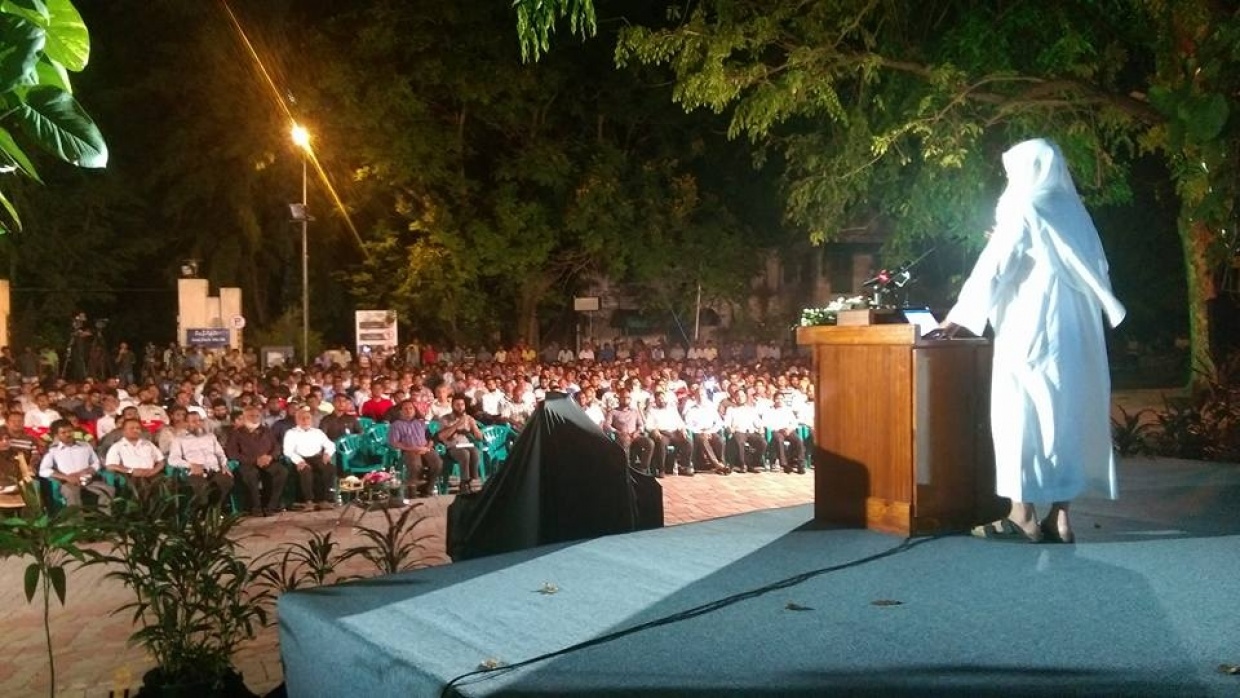 "...ﷲގެ ދެއަތްޕުޅުވޭ. އަހަރެމެން ގަބޫލުކުރަން މިގޮތަށް. މިއީ ޤުރުއާނުގައި ބަޔާންކުރައްވާފައިވާ ކަމެއް. މިއީ ސުންނަތުގައި ބަޔާންކުރައްވާފައިވާ ކަމެއް. ބައެއް މީހުން އައިސް ބުނާނެ. ނޫން ނޫން ނޫން، މިއީ އެކަށީގެންވާ ގޮތެއް ނޫން. ﷲ ގެ ދެއަތްޕުޅެއް ނުވޭ. މިހާރު ކަލޭ ބުނަން ބޭނުންވަނީ ޤުރުއާނަކީ ތެދެއް ނޫނޭ؟ޤުރުއާނުގައި ﷲ އަންގަވާފައި ވޭ، ޝައިތާނާއަށް ވަޙީކުރެއްވި ކަމަށް، އޭ ޝައިތާން، އޭ އިބިލީސް ތިމަން ރަސްކަލާނގެ ދެ އަތްޕުޅުން އުފެއްދެވި އުފެއްދެވުމަށް ސަޖިދަކުރުމުން ކަލޭ ދުކުކުރީ ކޮން ކަމެއްހޭ؟ ޝައިތާން ބުނި. އަހަރެން އޭނާއަށް ވުރެ ރަނގަޅޭ. އިބަރަސްކަލާނގެ ތިމަން އުފެއްދެވީ އަލިފާނުންނޭ. އޭނާ އުފެއްދެވީ މަށިންނޭ. ޝައިތާނާ ގަބޫލުކުރޭ އަހަރެމެންނަށް ވުރެ ރަނގަޅަށް. އޭނާއެއް ނުބުނޭ، އޭ ނޫނޭ ނޫނޭ ، އެކްސްކިއުޒްމީ ﷲ ، އިބަރަސްކަލާނގެ ދެއަތްޕުޅެއް ނުހުރޭ، އޭނާ ނުބުނޭ އެހެންނެއް. އެހެނީ އޭނާ އެކަން ގަބޫލުކުރޭ. އޭނާގެ ތައުހީދުލް އަސްމާއު ވައް ސިފާތުގައި އޭނާގެ އީމާންކަން ވަރުގަދަ. އެކަމަކު އޭނާގެ އޮތީ ބަލިކަށި އީމާންކަމެއް، ތައުހީދުލް އުލޫހިއްޔަތާ މެދު، އެހެންވީމާ އޭނާ ކާފަރަކަށް ވީ،" ތައުހީދާ މެދު މީހުންނަށް އޮޅުން އަރާފައިވާ މިންވަރުގެ މިސާލެއްގެ ގޮތުގައި ޝައިޚު ވިދާޅުވިއެވެ.