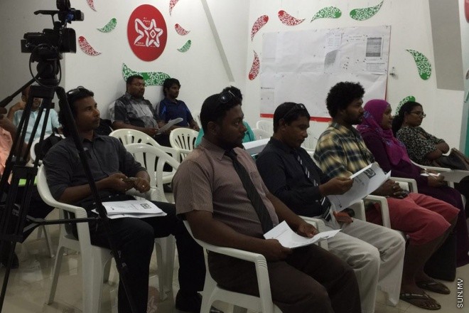 ހޭންޑްބޯލް މޯލްޑިވްސް އޮފީހުގައި މިއަދު ކުރިއަށް ގެންދިޔަ އިންޓަސްކޫ ހޭންޑްބޯލް މުބާރާތުގެ ގުރުނެގުމުގެ ރަސްމިއްޔާތުގެ ތެރޭން -- ސަން ފޮޓޯ: އަހްމަދު މުޖްތަބާ