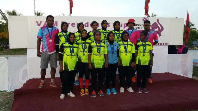 ވީއޭއެމް ޕްރެޒިޑެންޓްސް ކަޕް ނޯތުގެ ފައިނަލުގައި އިހަވަންދޫ ކްލަބު ޕޯލްސްޓާ އާއި ސޮސައިޓީ ފޯ ކުޅުދުއްފުށި ޔޫތު ބައްދަލުކުރި މެޗުގެ ތެރެއިން: އެ މެޗު ސީދާ ތިން ސެޓުން ކާމިޔާބުކޮށް، ޗެމްޕިއަންކަން ހޯދީ އިހަވަންދޫ ކްލަބު ޕޯލްސްޓާ --- ފޮޓޯ: ވީއޭއެމް