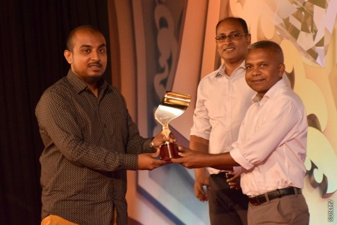 މޯލްޑިވްސް މީޑިޔާ ކައުންސިލުން ދޭ ނޫސްވެރިކަމުގެ އިނާމު 2015 ދިނުމުގެ ރަސްމިއްޔާތުގެ ތެރެއިން: ޖާރނަލިޒަމް ދާއިރާއިން އެވޯޑު ހާސިލްކުރި ހަވީރު ނޫހުގެ ނިޝާން އަލީ -- ސަން ފޮޓޯ/ މުހަންމަދު އަފްރާހް