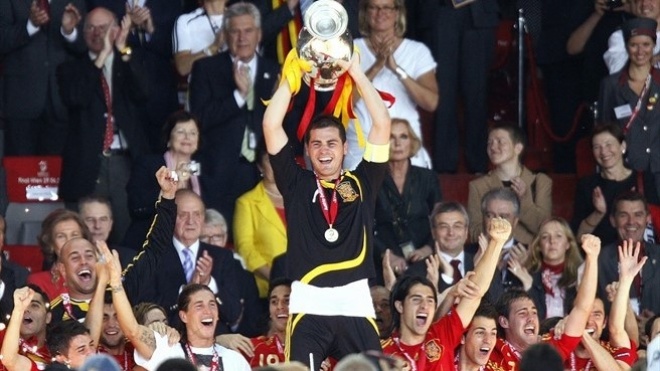 1960 ވަނަ އަހަރުން ފެށިގެން، 2004 ވަނަ އަހަރާ ހަމަޔަށް، ޔޫރޯ މުބާރާތުގެ ތަށްޓަށް ބަދަލެއް އައިސްފައެއް ނުވެއެވެ. ތަށި އަލުން ފަރުމާ ކުރެވުނީ 2008 ވަނަ އަހަރުގެ މުބާރާތަށެވެ. ފަރުމާ ބަދަލު ކުރެވުނު ތަށި ފުރަތަމަ އުފުލައިލީ، ސްޕޭނުގެ ކެޕްޓަން އަދި ގޯލް ކީޕަރު އީކާރ ކަސިޔަސްއެވެ.