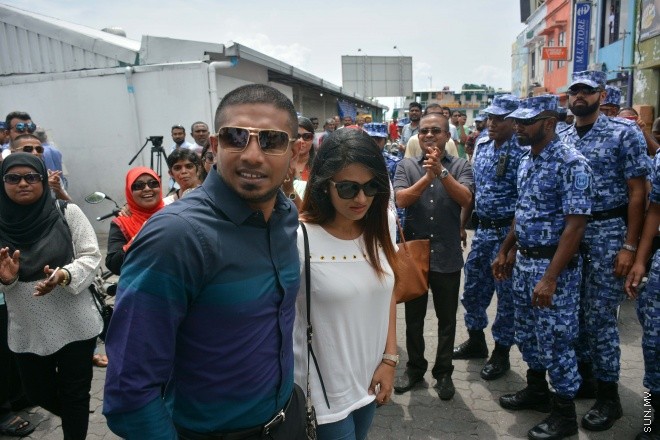 ހުކުމް އިއްވި ދުވަހު މަހުލޫފް އޭނާގެ އަނބިކަނބަލުންނާ އެކު ކްރިމިނަލް ކޯޓު ކައިރީގައި --- ސަންފޮޓޯ/ މުހައްމަދު އަފްރާހް