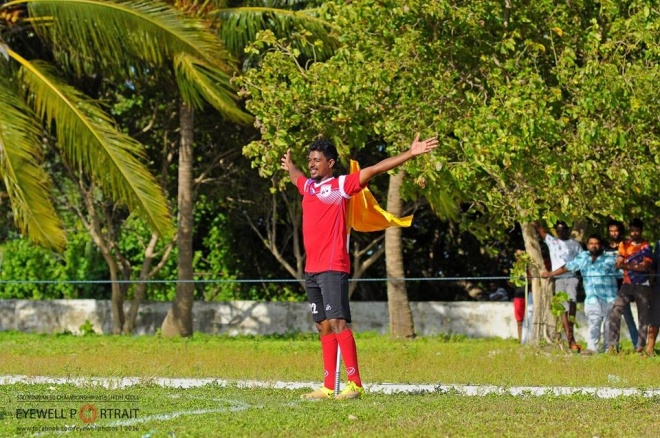 ކުޅުދުއްފުށި ނެއްލައިދޫ މެޗުގައި ކުޅުދުއްފުޓަށް އެޓީމުގެ ދެވަނަ ލަނޑު ޖަހައިދިނީ ފަރުހަތު މުހައްމަދު -- ފޮޓޯ: އައިވެލް ޕޯޓްރެއިޓް