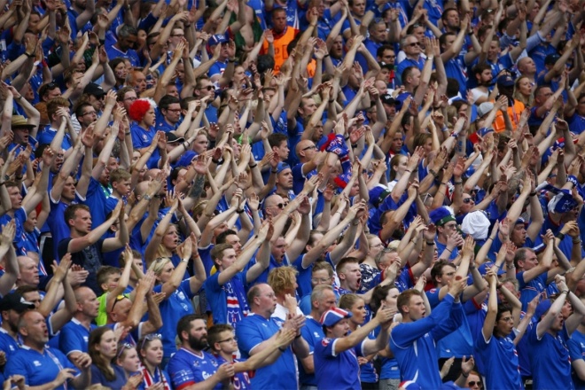 ފްރާންސްގައި މިފަހަރު ބޭއްވި ޔޫރޯ 2016 ފުޓްބޯޅަ މުބާރާތުގައި އައިސްލޭންޑްގެ ސަޕޯޓަރުން އެޓީމަށް ތަރުހީބުދެނީ -- ފޮޓޯ: އައިސްލޭންޑްމެގް