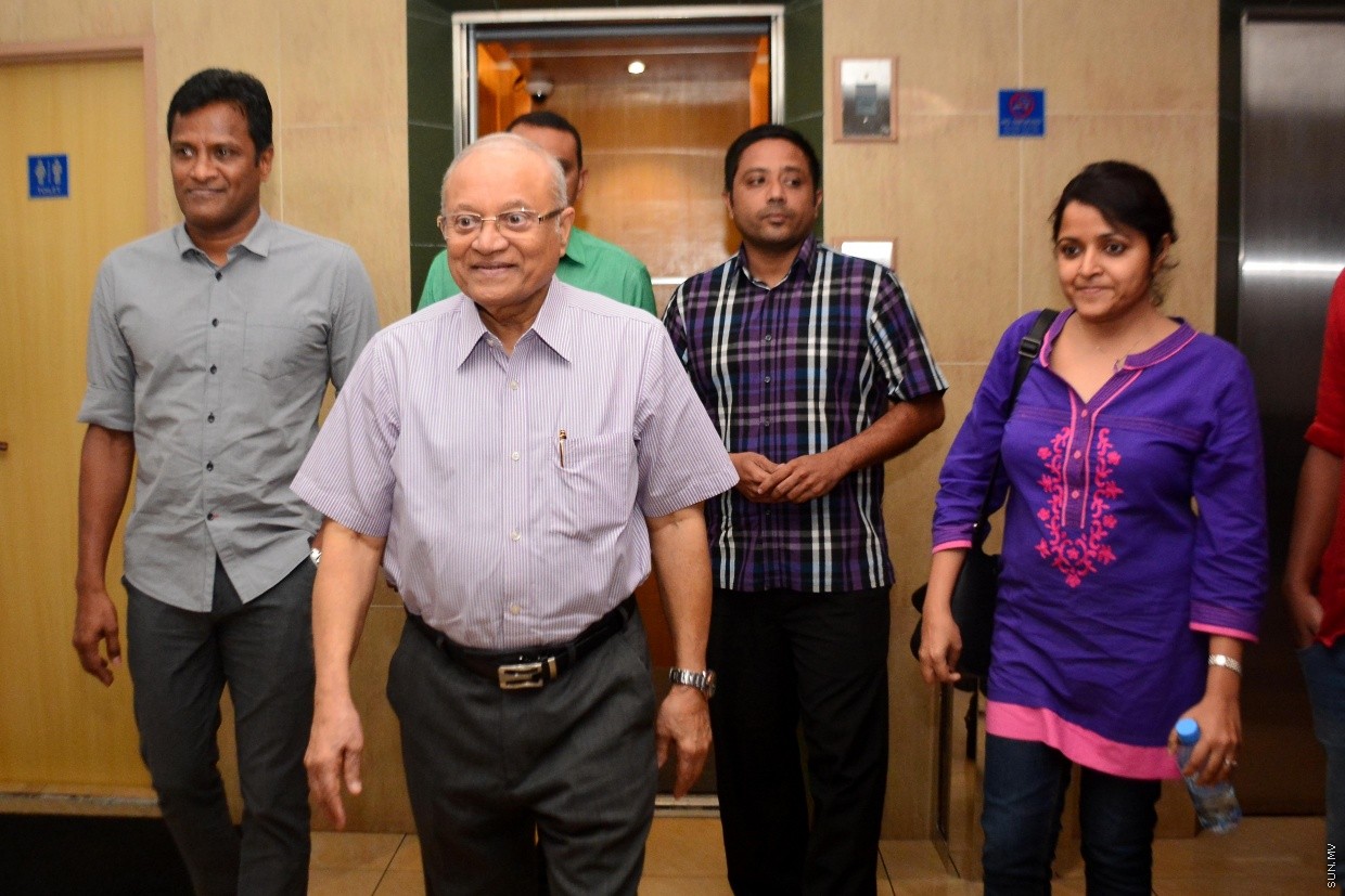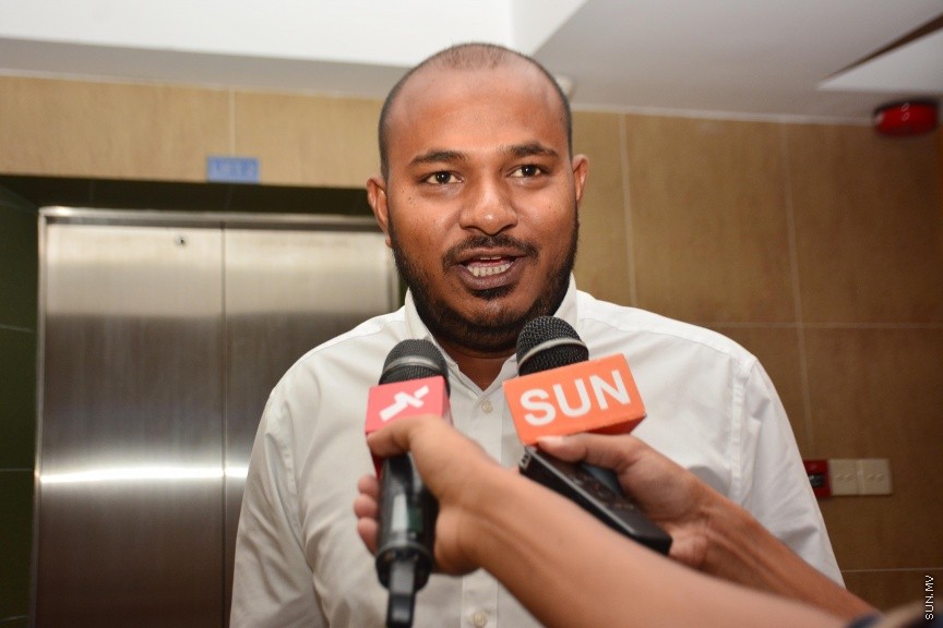 ބާރަށު ދާއިރާގެ މެމްބަރު އިބްރާހީމް ޝުޖާއު ނޫސްވެރިންނަށް މައުލޫމާތު ދެއްވަނީ ---- ސަން ފޮޓޯ: ފަޔާޒު މޫސާ