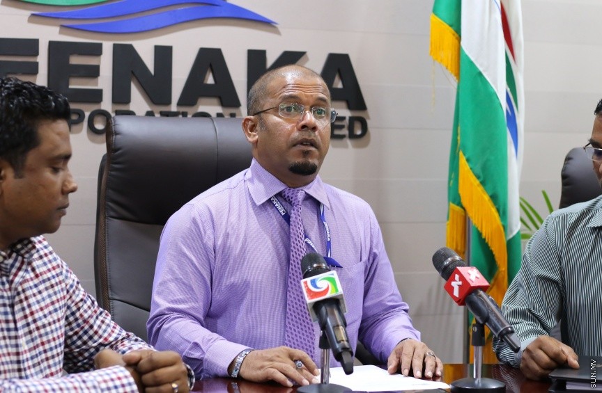 ފެނަކަ ކޯޕަރޭޝަންގެ މެނޭޖިން ޑިރެކްޓަރު އަޙްމަދު ޝަރީފް: އޭނާ ވިދާޅުވީ ގދ. ތިނަދޫގެ އާ އިންޖީނުގޭގެ މަސައްކަތް ހުއްޓިފައިވަނީ މަސައްކަތް ހަވާލުކޮށްފައިވާ ކުންފުންޏަށް އެޑްވާންސް ޕޭމެންޓް ދެއްކުމުގައި ދަތިތަކެއް ދިމާވުމުން ކަމަށް --- ސަން ފޮޓޯ/ އިޙްތިޝާމް މުހައްމަދު