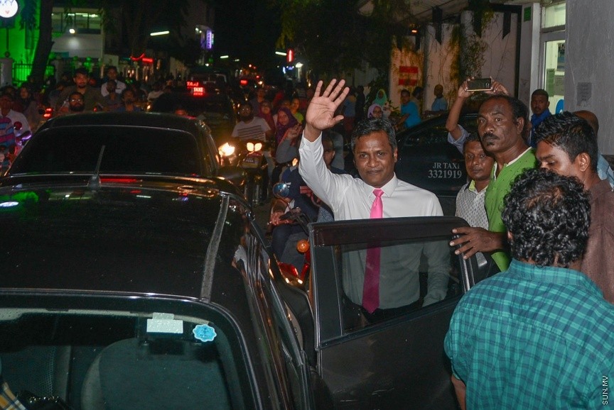 ރޭ ބޭއްވި ނިއުސްކޮންފަރެންސް އަށް ފަހު އުމަރު އެނބުރި ވަޑައިގަންނަވަނީ ---- ސަން ފޮޓޯ: މުހައްމަދު އަފްރާހު