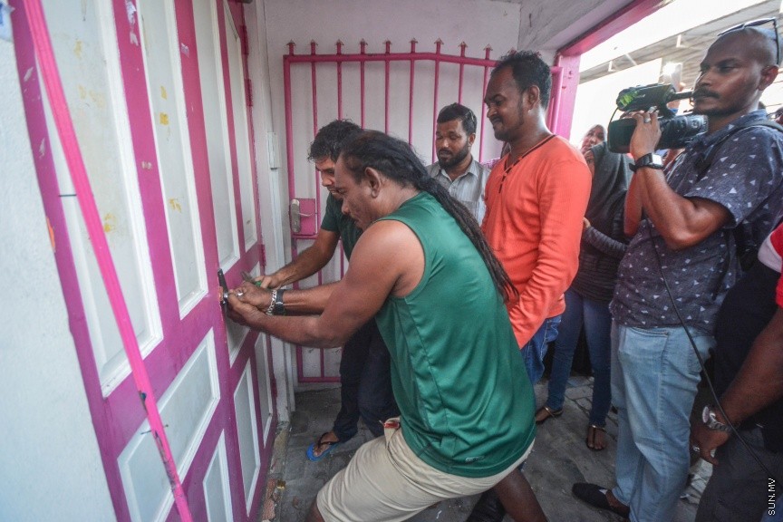 ޕީޕީއެމްގެ އޮފީސް ހިންގި އިމާރާތުގެ އެތެރެއަށް ވަނުމަށް ގޭގެ ވެރިފަރާތުން ހުއްދަދެނީ --- ސަން ފޮޓޯ: ފަޔާޒު މޫސާ