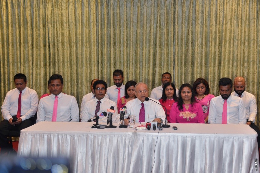 27 ސެޕްޓެމްބަރު 2016: ޕީޕީއެމްގެ އަހަރީ ދުވަހުގެ ޖަލްސާ ނުބޭއްވުމުން މައުމޫން ބޭއްވި ޕްރެސް ކޮންފަރެސްގެ ތެރެއިން-- ސަން ފޮޓޯ/ މުހައްމަދު އަފްރާހު