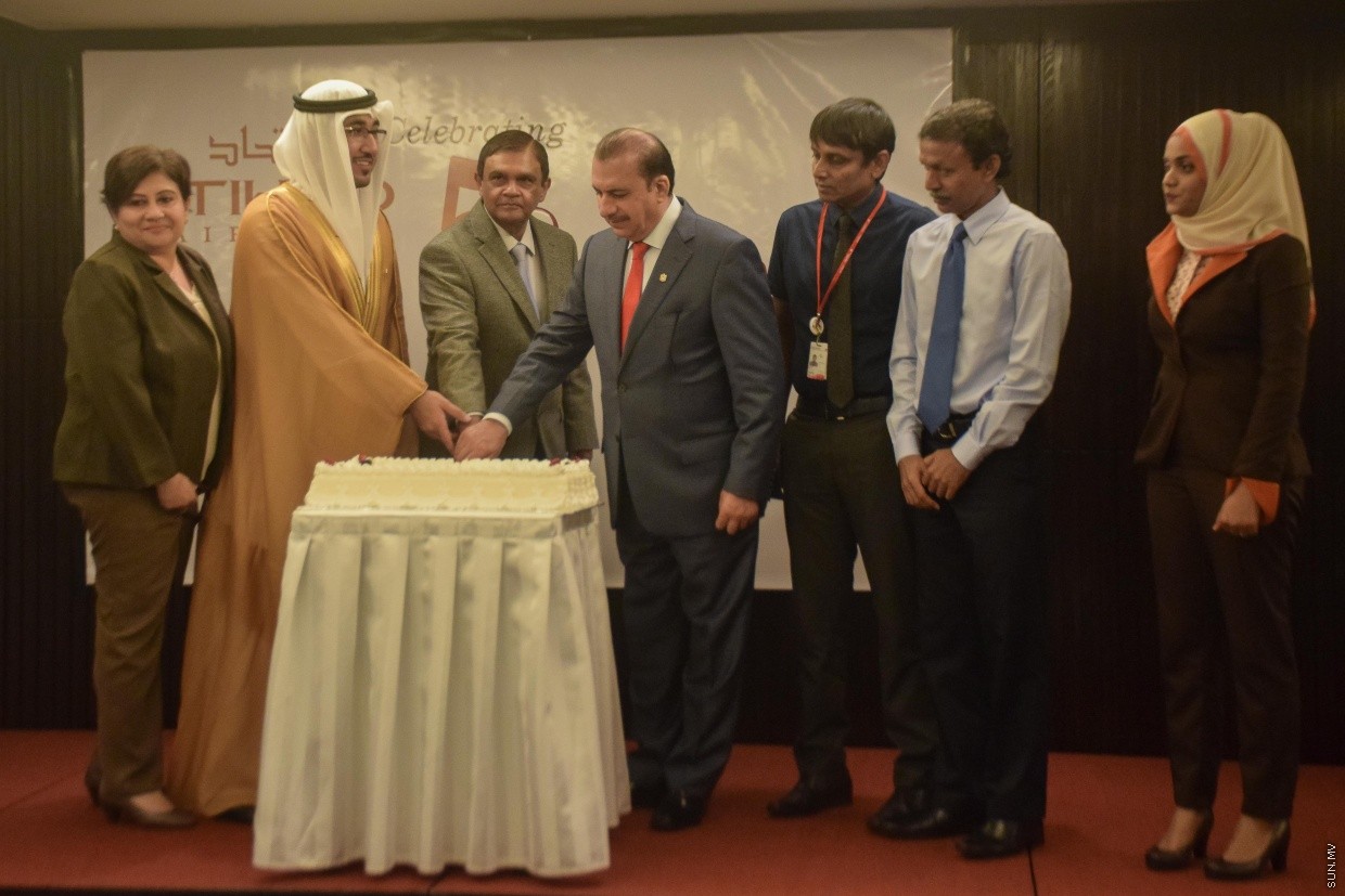 އިއްތިހާދު އެއާވޭސްގެ ފަސް އަހަރު ފުރުމުގެ ރަސްމިއްޔާތުގައި އިއްތިހާދު އެއާވޭސްގެ ރާއްޖޭގެ ޖީއެސްއޭ، އޭވިއޭޝަން ސާވިސެސް ޕވޓ ލޓޑގެ މެނޭޖިންގް ޑިރެކްޓަރ ވާހަކަ ދައްކަވަނީ -- ސަން ފޮޓޯ/ މުހައްމަދު އަފްރާހު