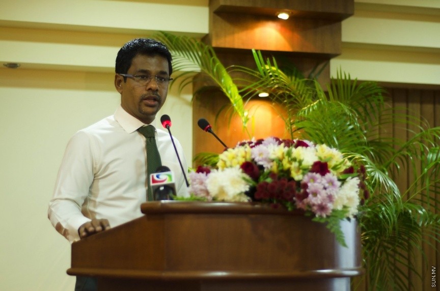 ގްލޯބަލް ހެލްތު ޑިޕްލޮމެސީ ޓްރެއިނިން ފެށުމުގެ ރަސްމިއްޔާތުގައި މިނިސްޓަރު ވާހަކަފުޅު ދައްކަވަނީ --- ސަން ފޮޓޯ/ އަބްދުﷲ ހަފީޒް