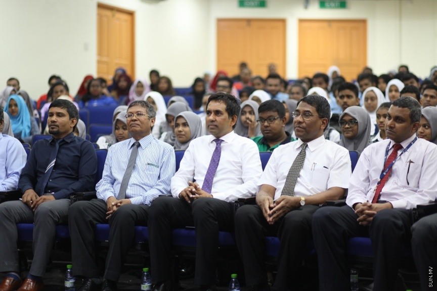މިއަދު ގައުމީ ޔުނިވާސިޓީގެ އޮޑިޓޯރިއަމްގައި މައުލޫމާތު ދިނުމުގެ ސެޝަންގައި ދަރިވަރުންތަކެއް --- ސަން ފޮޓޯ/ އަހުމަދު ޝަރުވާން