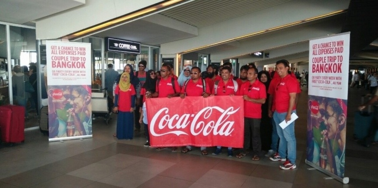 ކޮކާކޯލާ ފުޅީގެ މަތިގަނޑުގެ ދަށުގައިވާ ނަންބަރު އެސްއެމްއެސް ކުރާ މީހުންގެ މެދުގައި ގުރުއަތެއް ނަގައިގެން ނަސީބުވެރިން ހޮވާ ގޮތަށް ބޭއްވި ޕްރޮމޯޝަންގައި މުޅި އެކު 27 ބޭފުޅަކަށް، އެއިން ކޮންމެ ބޭފުޅަކާ އެކު އިތުރު ބޭފުޅެއް ގޮވައިގެން ބެންކޮކަށް ދަތުރު ކުރުމުގެ ފުރުސަތު ދީފައިވެ އެވެ. ހަތަރު ދުވަހަށް ބެންކޮކްގައި ޗުއްޓީ ހޭދަކޮށްލުމަށް ކުރާ ހިލޭ ދަތުރުގައި ހުރިހާ ބޭފުޅުން ވެސް ތިބުމަށް ހަމަޖެހިފައި ވަނީ ބެންކޮކްގެ ފަސްތަރީގެ ހޮޓަލެއްގަ އެވެ.