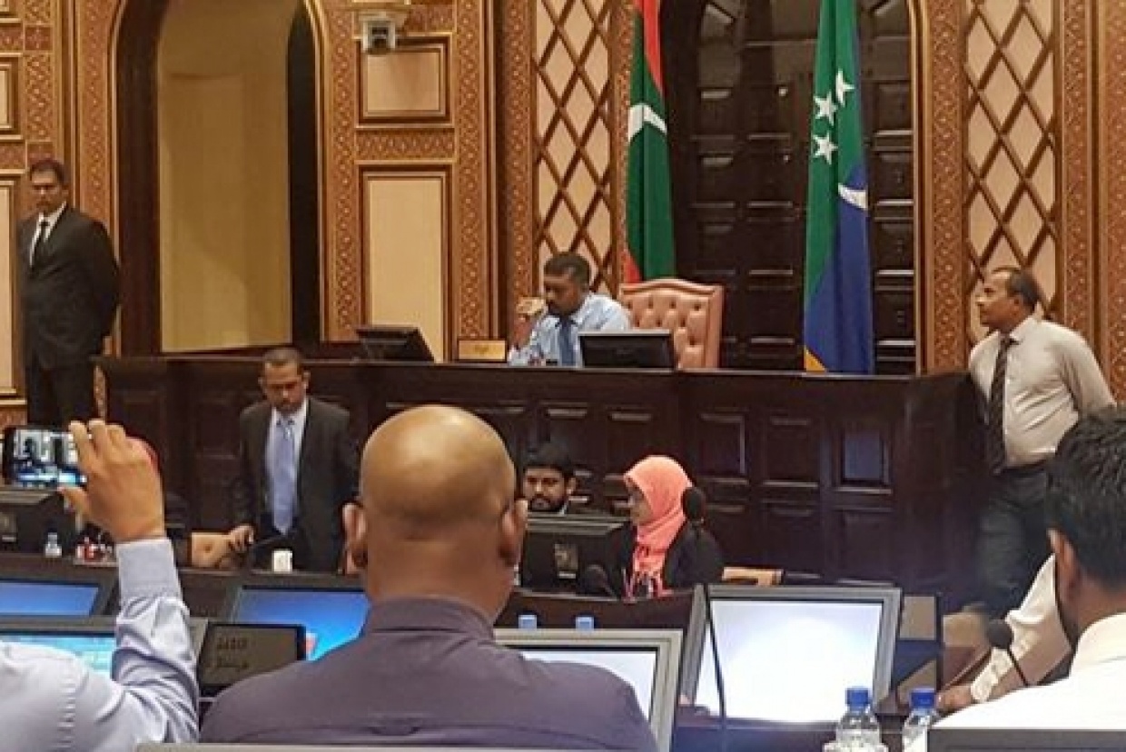 އެމްޑީޕީ ޕާލަމެންޓްރީ ގްރޫޕުގެ މެމްބަރު ފައްޔާޒު އިސްމާއިލް މަޖިލީހުގެ ތަޅުމުގައި އިހްތިޖާޖު ކުރައްވައި، މަޖިލީހުގެ ރިޔާސަތުގެ ގޮނޑިކޮޅު ހިސޯރަ ކުރައްވައިފި އެވެ.