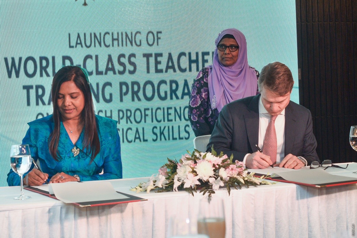 ޓީޗަރުންގެ އިނގިރޭސި ބަހުގެ ފެންވަރު މަތި ކުރަން އެޑިޔުކޭޝަން މިނިސްޓްރީއާއި ދުނިޔޭގެ އެންމެ ބޮޑު ޕްރައިވެޓް އެޑިޔުކޭޝަން ކުންފުނި، އެޑިޔުކޭޝަން ފަސްޓް (އީއެފް) ގުޅިގެން ތަމްރީނު ޕްރޮގްރާމެއް ފަށަން މިއަދު އެއްބަސް ވުމެއްގައި ސޮއިކޮށްފި އެވެ.