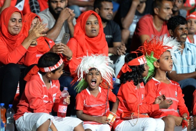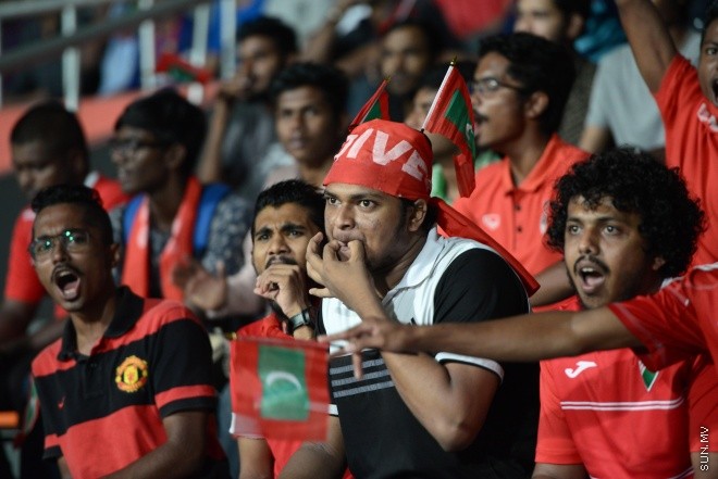 ސެޕްޓެމްބަރ 6، 2016: އޭއެފްސީ އޭޝިއަން ކަޕް ކޮލިފިކޭޝަންގެ ޕްލޭއޯފް ފުރަތަމަ ލެގުގައި ރާއްޖެ އާއި ލާއޯސް ބައްދަލުކުރި މެޗުގެ ތެރެއިން -- ސަން ފޮޓޯ/ ފަޔާޒު މޫސާ