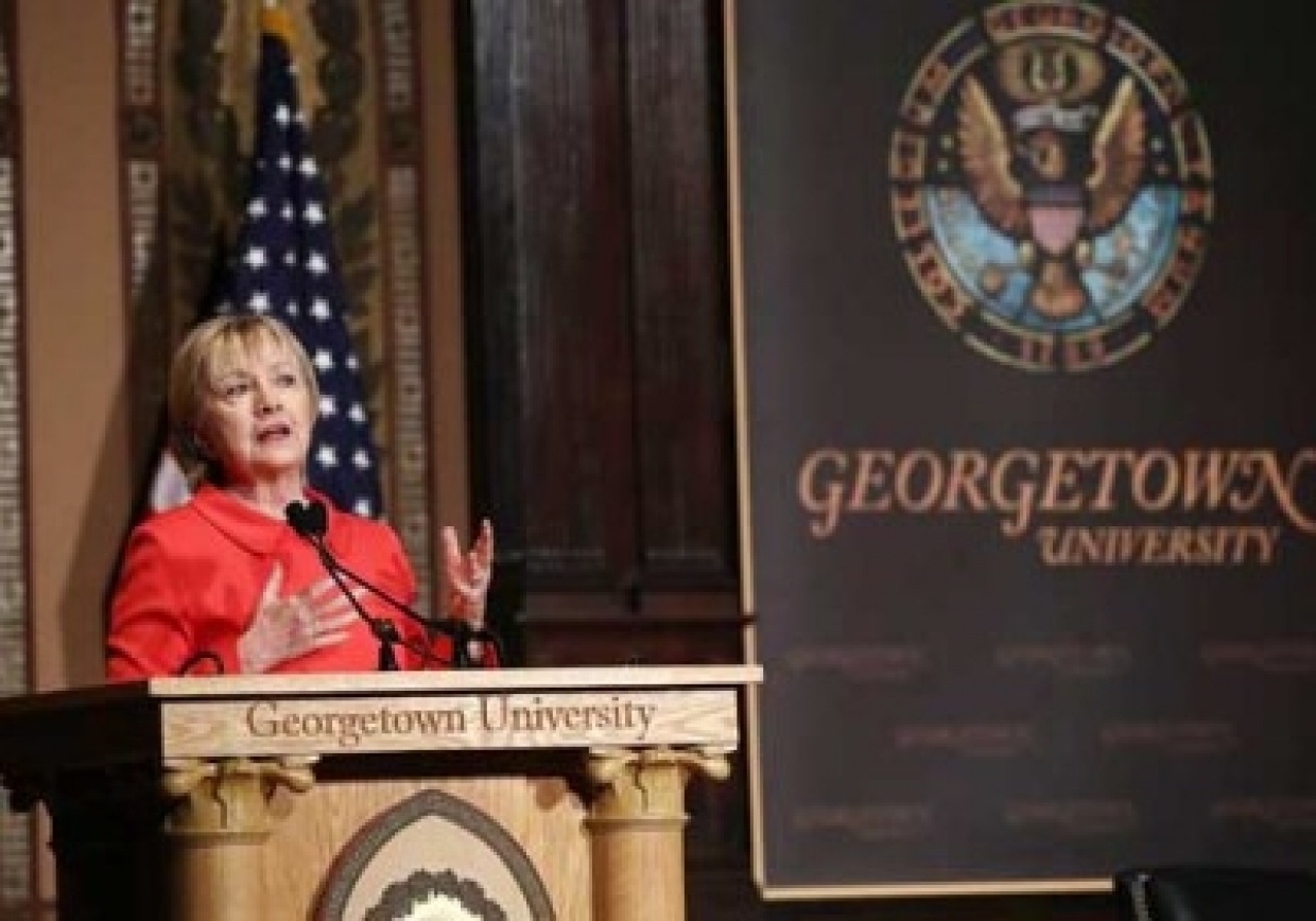 އެމެރިކާގެ ޖޯޖް ޓައުން ޔުނިވަރސިޓީގެ ދަރިވަރުންނަށް ދެއްވި އޯޕަން ލެކްޗަރެއްގައި ހިލަރީ ވިދާޅުވީ ޚާރިޖީ ވުޒާރާގެ ބަޖެޓް ކުޑަކުރުމަކީ ދުނިޔޭގައި އެމެރިކާއަށް ކުރިމަތިވަމުންދާ ގޮންޖެހުންތަކާ ކުރިމަތިލުމުގެ ގާބިލްކަން އެމެރިކާގެ ކިބައިގައި ކުޑަވެގެންދާނެ ކަމެއް ކަމަށާއި މިކަމުގެ ސަބަބުން އެމެރިކާގެ ގައުމީ މަސްލަހަތަށް ނުރައްކާވެގެންދާނެ ކަމުގައެވެ.