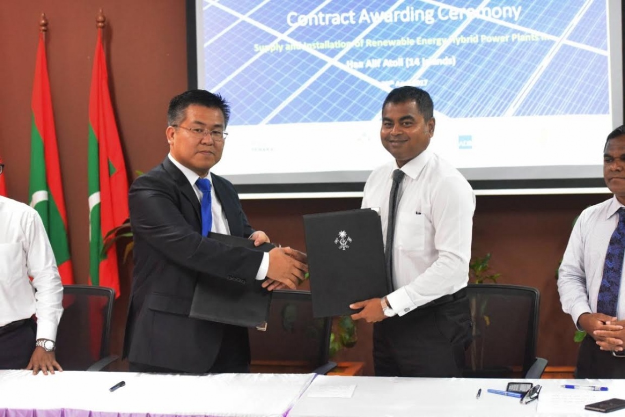 ހއ. އަތޮޅުގެ މީހުން ދިރިއުޅޭ ހުރިހާ ރަށެއްގައި ހަކަތައިން ކަރަންޓް އުފައްދާ ނިޒާމް ހަރުކޮށް، އެ ހިދުމަތް ދިނުމަށް ޗައިނާގެ ކުންފުންޏަކާ ހަވާލުކޮށްފިއެވެ.