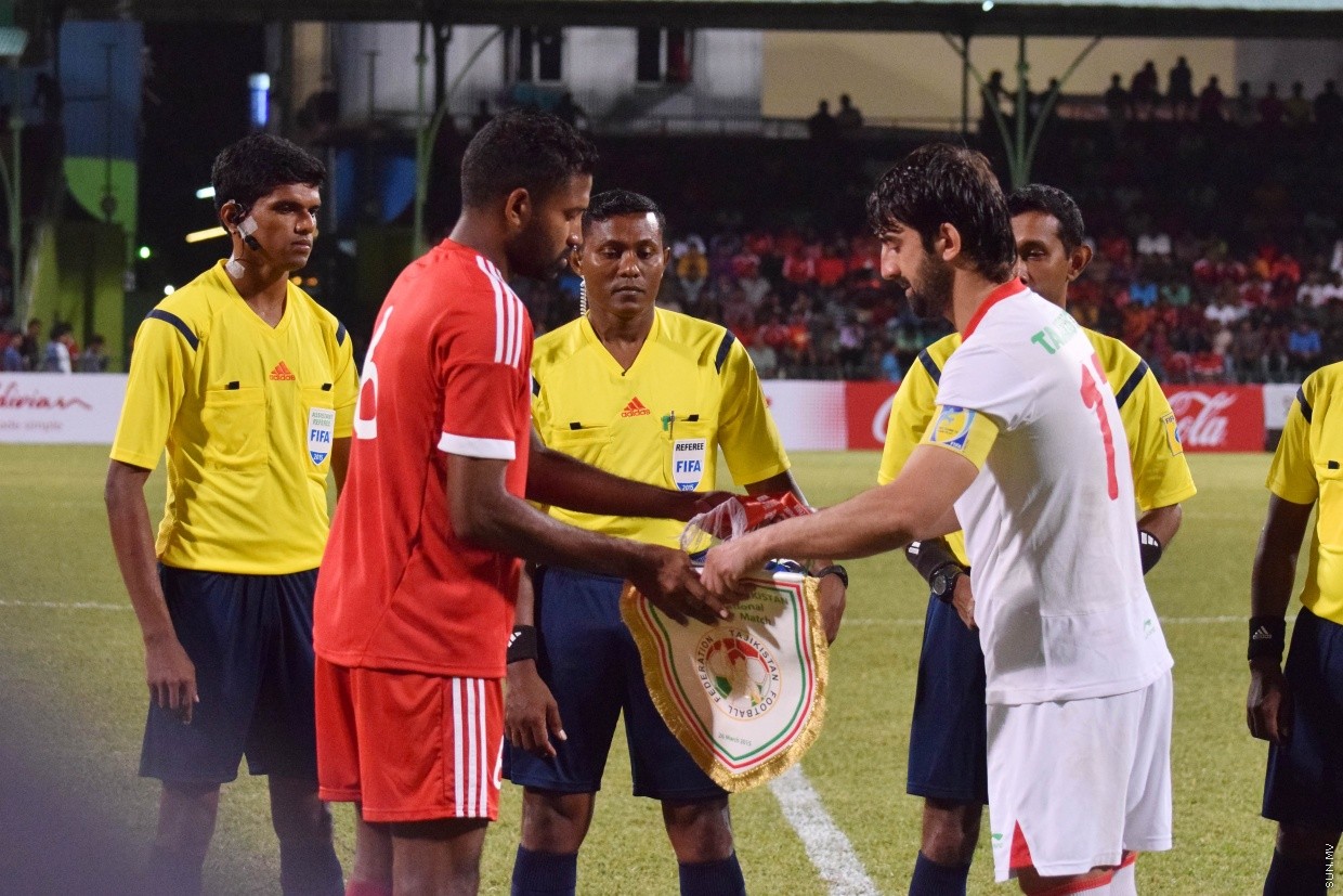 މާޗް 3، 2017: މާލޭ ލީގުގައި ނިއު ރޭޑިއަންޓް ސްޕޯޓްސް ކްލަބާއި ވިކްޓަރީ ސްޕޯޓްސް ކްލަބު ބައްދަލުކުރި މެޗުގެ ތެރެއިން -- ސަން ފޮޓޯ/ ފަޔާޒު މޫސާ